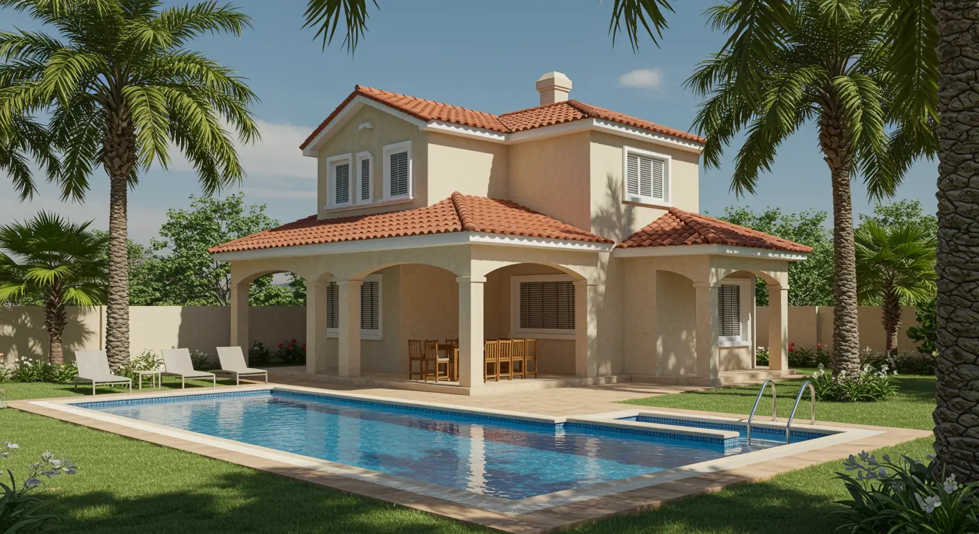 Accommodation of 65m², with separate double bedroom, spacious living room with integrated open plan kitchen, bathroom and with large garden and views to the pool.